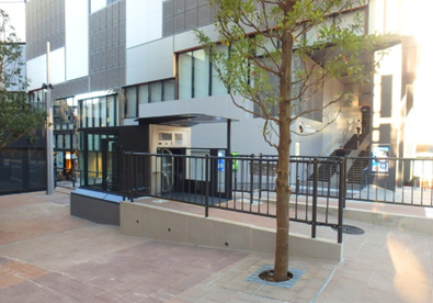 地上部を文化的に活用しつつ地下に自転車204台を収容。人通りの多い狭隘な敷地で周辺環境を最小限に施工